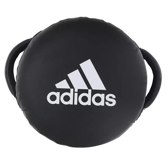 Mit dem Adidas Schlagpolster „Round Kick Pad“ können Sie direkt in das Schlagtraining starten. Es eignet sich hervorragend für das Partnertraining im Boxen. Die Schlagfläche des Polsters besteht aus widerstandsfähigem Kunstleder. Die beiden seitlich angebrachten Handgriffe sorgen für einen festen Halt. So werden Schläge aller Art vom Boxpolster hervorragend abgefangen und gedämpft. Das Boxpolster ist in Standardgröße mit einem Durchmesser von 38 cm erhältlich.