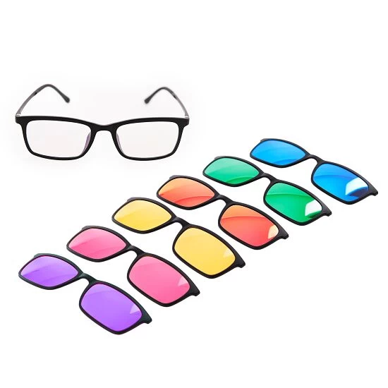 Das Artzt Neuro Trainingstool-Set „Farbbrillen“ macht sich die Kraft der Farben zunutze. Denn Farben beeinflussen durch ihre individuellen Wellenlängen unser physisches und psychisches Wohlbefinden. Diese Eigenschaft machen sich die 6 Brillengläser-Clips zunutze und setzen in Körper und Seele entsprechend ihres Wirkspektrums bestimmte Reaktionen in Gang. Die Farbclips aus Acryl mit 100 % UV-Schutz lassen sich durch Magnete am Kunststoff-Brillengestell befestigen und wechseln. Mit dem beiliegenden Etui können Sie Clips und Gestell praktisch und sicher transportieren.