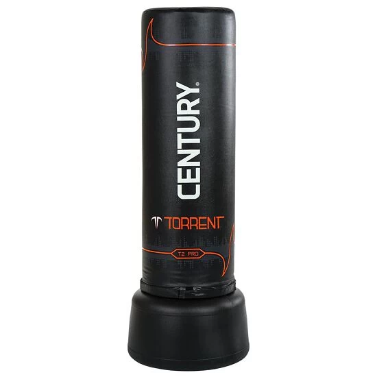 Der Century Boxsack „Torrent“ ist in der Ausführung „T1“ erhältlich, welcher aufgrund seiner Größe weniger Platz einnimmt – ideal also für kleine Räume. Der „T2 Pro“ hingegen ist größer und bietet somit eine größere Schlag- und Trittfläche. Beide Standboxsäcke besitzen eine kleine Basis, welche wenig Platz einnimmt und leicht zu bewegen ist. Über ein spezielles Klettsystem lässt sich die Polsterung einfach mit der Basis verbinden. Das spezielle Verriegelungssystem ermöglicht darüber hinaus, den aufgebauten „T1“ und „T2 Pro“ in eine beliebige Richtung zu rollen, ohne dass die Basis dafür gelockert werden muss. Ein weiterer Vorteil ist das 3-teilig patentierte System: Dieses sorgt für eine ausgezeichnete Stoßdämpfung.
