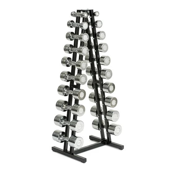 - Set 1-10 kg, mit Ablageständer: je 1 Paar Chromhanteln 1-10 kg und Ablageständer