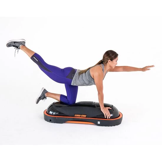 Der Terra-Core Balance-Trainer ist ein multifunktional einsetzbares Fitnessgerät für über 250 Übungen. Der Fitnesstrainer ähnelt einem Stepper. Die Oberfläche ist hierbei mit Luft gefüllt und dadurch besonders instabil – eine echte Herausforderung also für den ganzen Körper. Ein besonderes Merkmal des Terra-Core ist die hohe Gewichtsbelastung von ca. 450 kg. Das Luftkissen ist mit einem Stöpsel versehen, welcher sich mittels im Lieferumfang enthaltenem Stöpsellöser herausziehen lässt. So kann Luft abgelassen oder Luft mit der mitgelieferten Pumpe hinzu gefügt werden. Die Instabilität ändert sich und das Workout ist individuell auf die Fitness abstimmbar. Je härter das Luftkissen, desto stabiler. Damit Sie für das Training bestens gerüstet sind, liegen der Lieferung eine DVD und ein Übungsposter bei.