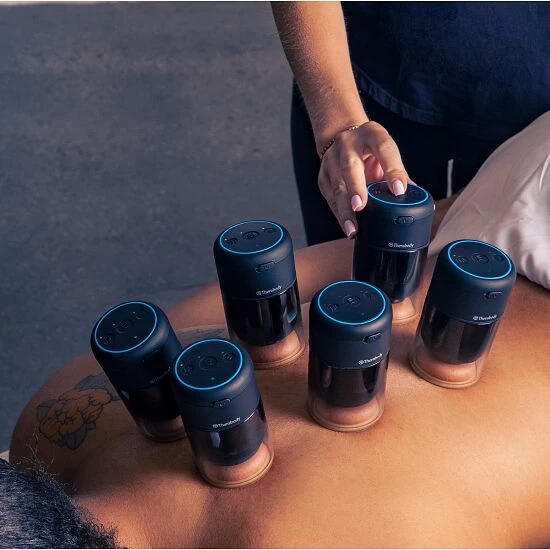 Der Therabody Schröpfsauger „Theracup“ verbindet das klassische Schröpfen mit Wärme und Vibration für eine noch effektivere Erholung. Dabei überwachen spezielle Sicherheitssensoren und die automatische Abschaltfunktion (3 Min. bei ununterbrochenem Gebrauch) die Wärme- und Saugstufe für das entspannte Behandeln der Hautpartien. 3 unterschiedlich große Schröpfköpfe ermöglichen dabei das Behandeln kleiner und großer Hautpartien. Die Wärme, Saugdekompression sowie die Vibrationsstufe sind jeweils in 3 Intensitäten einstellbar. Der Theracup soll die natürlichen Heilungsprozesse anregen, indem die Durchblutung gefördert wird. Verspannungen und Schmerzen können gelindert und die allgemeine Beweglichkeit verbessert werden.