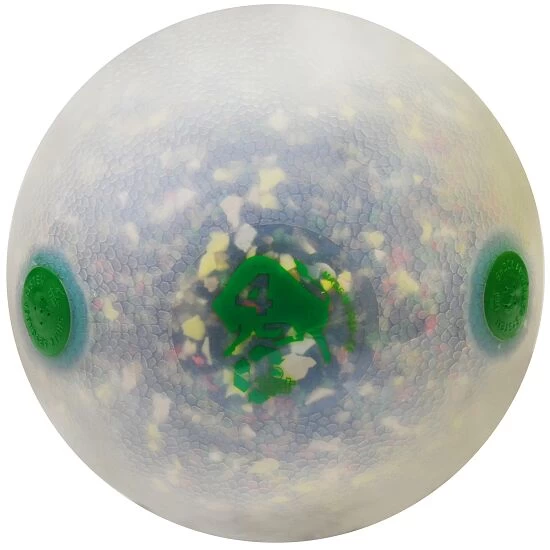 Der Trial Slam Ball „Recycle“ überzeugt vor allem durch seine umweltfreundlichen Eigenschaften – denn er ist zu 98 % aus recyceltem Material gefertigt, welches als Abfallprodukt keine Verwendung mehr hätte. Lediglich die transparente Schale wird hergestellt, damit das Kunststoff-GranulatEin Gemisch aus festen Partikeln des jeweiligen Materials, wie z.B. Körnern oder Kugeln. Verwendung vor allem als Füllmaterial. perfekt umhüllt ist. Die lieferbare Menge wird durch den Ausschuss an Material bestimmt. Darüber hinaus ist der Ball mit 2 Ventilen versehen, welche beim Aufprall dafür sorgen, dass die Luft im Inneren entweicht. Der Slam- Effekt erhöht sich, das Springen und Wegrollen des Balles wird verhindert.